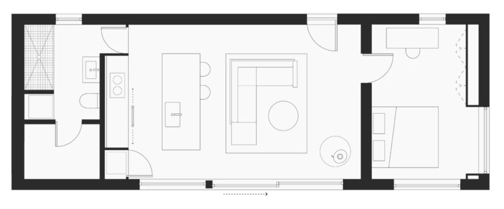 - Šviesi svetainė su vitrininiais langais, atvira virtuvės ir valgomojo zona, du patogūs miegamieji ir galimybė mansardoje įsirengti papildomas funkcines erdves.